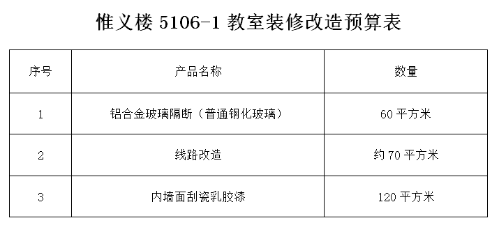 ******有限责任公司惟义楼5106-1教室需装修改造。特诚招相关服务商,欢迎符合本项目资格条件的单位参与比选。
