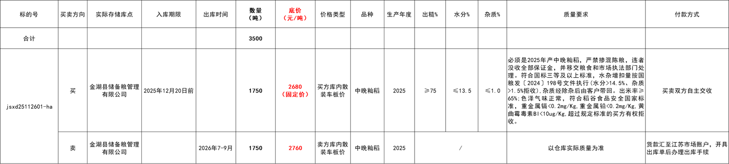 (一)本次交易采用国家粮食交易平台购销合作双向竞价功能实现,交易规则以本公告公示为准,实际系统操作解释权归江苏市场所有。